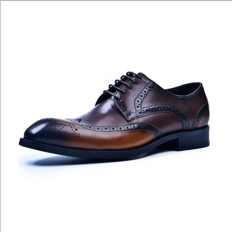 New Men Dress Genuine Leather Male Oxford Italian Classic Fashion Brown Black Red Lace Up Brogue Shoes Da046 Aliexpress